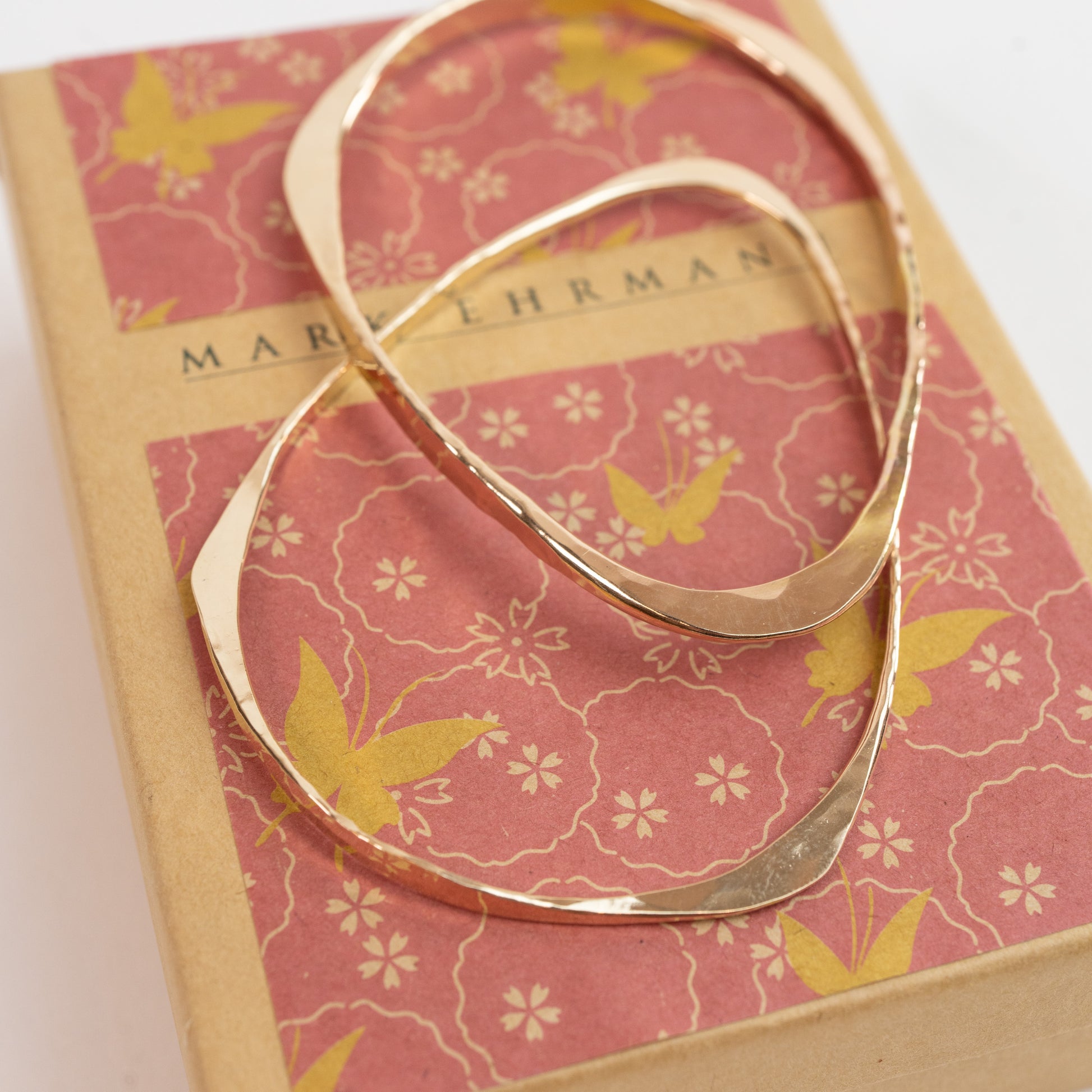 These 14k Solid Yellow Gold custom hand forged Three Way bracelets are classic handwrought designs. We make them in two gauges. Light - 12 gauge and Heavy - 8 gauge. We make your bracelets in four different sizes to choose from: Extra Small, Small, Medium and Large.